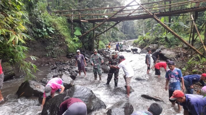 Personel dan Masyarakat Bersatu dalam Akselerasi Pembangunan Infrastruktur Strategis di Perairan Sungai Binau Songgon – Momentum bersejarah terukir di perairan Sungai Binau, Desa Songgon,