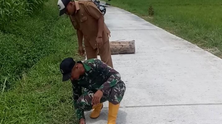 Anggota Satuan Tugas (Satgas) TMMD, Sertu Farid, Bersama Kepala Dusun Sukomaju, Tinjau Hasil Pekerjaan Jalan Rabat Beton