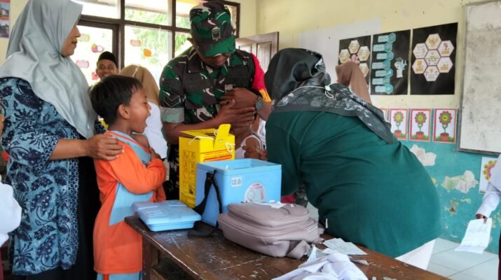 Babinsa Koramil Songgon Dampingi Vaksinasi Tetanus dan Difteri di SDN 2 Parangharjo Songgon – Dalam upaya mendukung program kesehatan masyarakat dan meningkatkan kualitas kesehatan