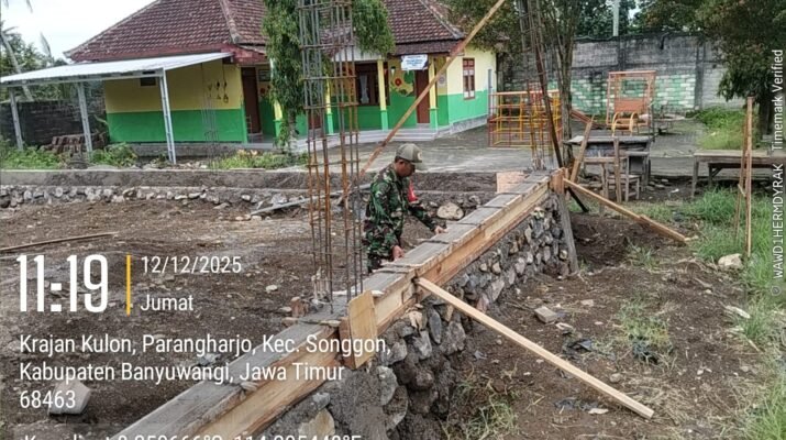 Songgon, Banyuwangi – Dua Babinsa Koramil 0825/20 Songgon turun langsung mengawal pembangunan Koperasi Desa Kelurahan Merah Putih (KDKMP) di wilayah binaannya, Jumat (12/12/2025). Serka