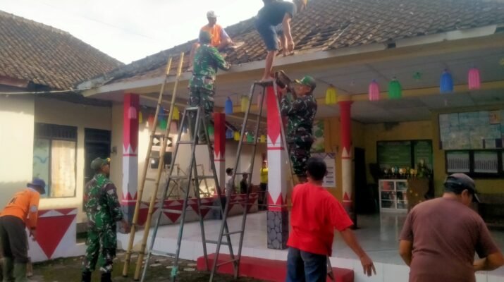 Aksi Nyata TNI: Koramil Songgon Turun Tangan Renovasi Atap Balai Dusun Yang Rusak
