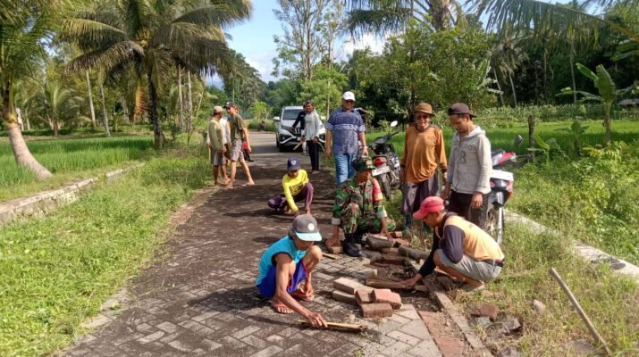 Semangat Produktif Koramil 0825/20 Songgon, Babinsa Pimpin Karya Bhakti Gotong Royong Bangun Desa. Wujud Nyata TNI Hadir Di Tengah Rakyat Songgon, Banyuwangi – Semangat