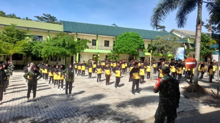 Koramil Songgon Gembleng Disiplin Siswa SMK Pasca PKL: Babinsa Turun Langsung Latih Baris Berbaris di Lapangan Songgon, Banyuwangi – Anggota Koramil 0825/20 Songgon turun