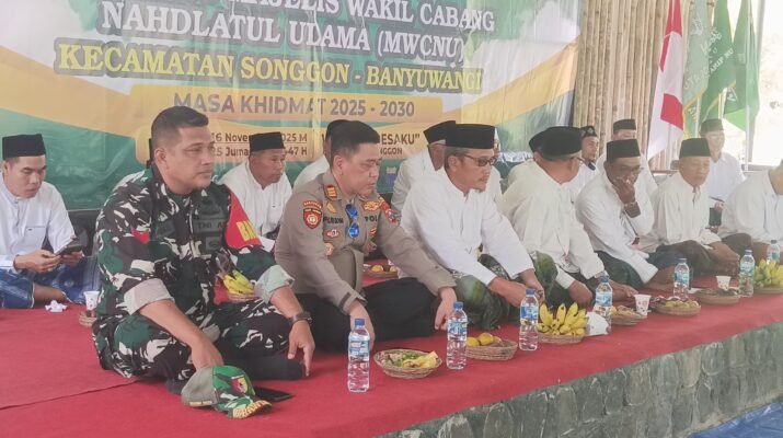 Pelantikan yang berlangsung mulai pukul 10.00 WIB ini dihadiri tokoh kunci NU Banyuwangi, KH. Sunandi Zubaidi selaku Ketua PC NU Banyuwangi beserta jajaran pengurus. Momentum bersejarah ini juga disaksikan pejabat strategis Kecamatan Songgon termasuk Plt. Camat Muhammad Norawi, S.Sos., M.Si., Kapolsek Songgon AKP Pudji Wahyono, S.H., serta seluruh kepala desa se-Kecamatan Songgon. Kehadiran lintas elemen ini menggambarkan soliditas hubungan pemerintah, TNI, Polri, dan organisasi masyarakat dalam menjaga harmoni sosial.