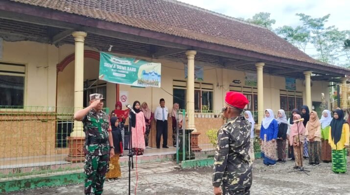 Songgon, Banyuwangi – Pagi yang khidmat menyelimuti halaman MI At-Tauhidiyah Dusun Pasar, Desa Sumberarum, Senin (10/11/2025). Serka Edy Mulyono, Babinsa setempat, berdiri tegak di hadapan 204 siswa-siswi yang berbaris rapi dalam upacara memperingati Hari Pahlawan. Dengan seragam loreng yang penuh wibawa, sang prajurit TNI tidak hanya menjadi pembina upacara, tetapi juga menjadi sosok teladan hidup bagi generasi muda yang tengah belajar mengenal makna pengorbanan pahlawan. Di samping Kepala Sekolah Mujitabah, S.Pd.I., dan lima guru pendamping, kehadiran Serka Edy Mulyono mengukuhkan peran vital Babinsa sebagai ujung tombak pendidikan karakter bangsa—langsung dari lapangan, tanpa jarak dengan rakyat.