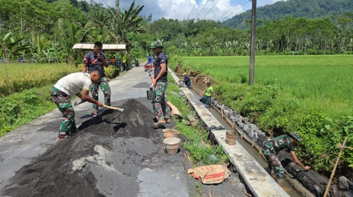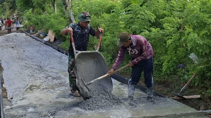 Keringat dan Semangat Gotong Royong Satukan Prajurit dan Warga Krajan 1A, Akses Desa Kian Terbuka.