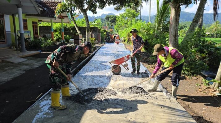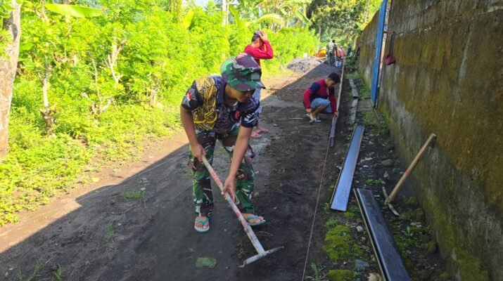 Satgas TMMD ke-126 Lebakharjo Laksanakan Pengecoran Jalan di RT 8, Warga Sambut Gembira Lebakharjo, Ampelgading – Satuan Tugas (Satgas) TNI Manunggal Membangun Desa (TMMD)