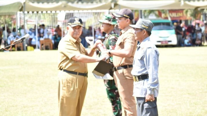BUPATI MALANG SERAHKAN ALAT KERJA KEPADA ANGGOTA TMMD KE-126 KODIM 0818/MALANG-BATU DI DESA LEBAK HARJO Malang – Bupati Malang, H. M. Sanusi secara simbolis