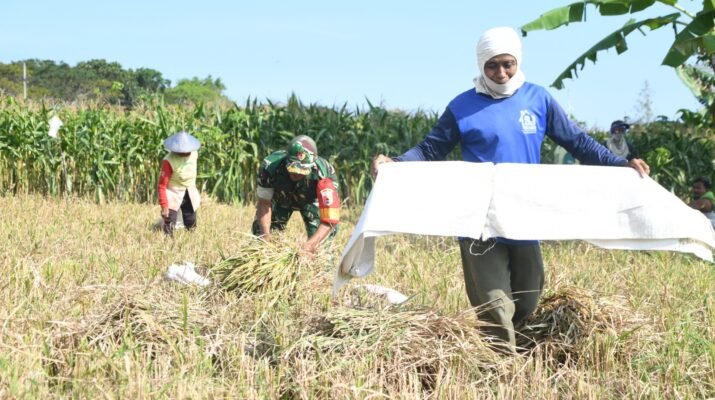 Panen Padi, Babinsa Di Acungi Jempol BANYUWANGI – Warga bangga memiliki seorang TNI ditengah-tengah masyarakat. Kebanggaan ini terungkap saat Bintara Bina Desa (Babinsa) Sertu
