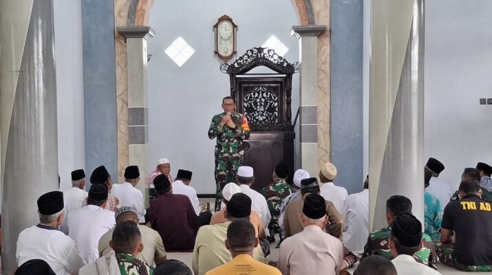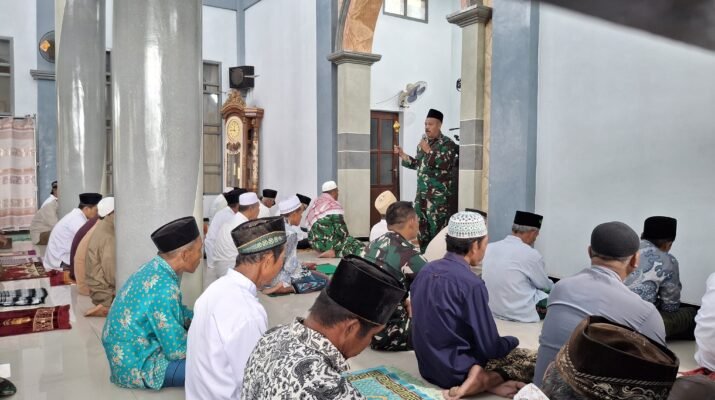 Anggota Bintal TMMD 125 Kodim 0825/Banyuwangi Sampaikan Khutbah Jumat di Siliragung BANYUWANGI – Suasana religius terasa di Masjid wilayah Kecamatan Siliragung, Kabupaten Banyuwangi, saat