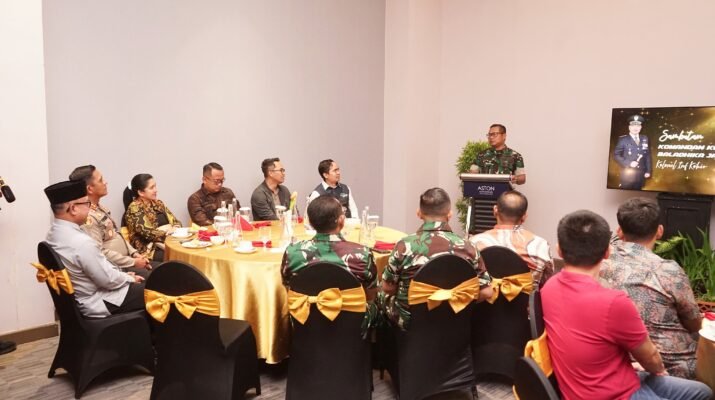 BANYUWANGI – Danrem 083/Baladhika Jaya Kolonel Inf Kohir didampingi ibu beserta rombongan melaksanakan kegiatan silaturahmi bersama Forkopimda dan Mitra Kodim 0825/Banyuwangi bertempat di Hotel Aston Banyuwangi, Jum’at (22/8/2025). Acara ini berlangsung penuh keakraban dengan suasana kebersamaan yang hangat.