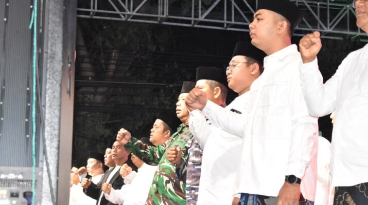 BANYUWANGI – Semarak malam puncak Hari Santri Nasional 2025 di Kabupaten Banyuwangi berlangsung penuh khidmat dan menggugah semangat kebangsaan. Bertajuk “PC NU Banyuwangi Bersholawat”, ribuan santri, ulama, dan masyarakat tumpah ruah di depan Kantor Pemkab Banyuwangi, Rabu malam (22/10/2025). Kegiatan yang dimulai pukul 20.19 hingga 23.20 WIB itu menjadi momentum spiritual sekaligus refleksi nasional atas kiprah santri sebagai penjaga moral dan pilar keutuhan bangsa.
