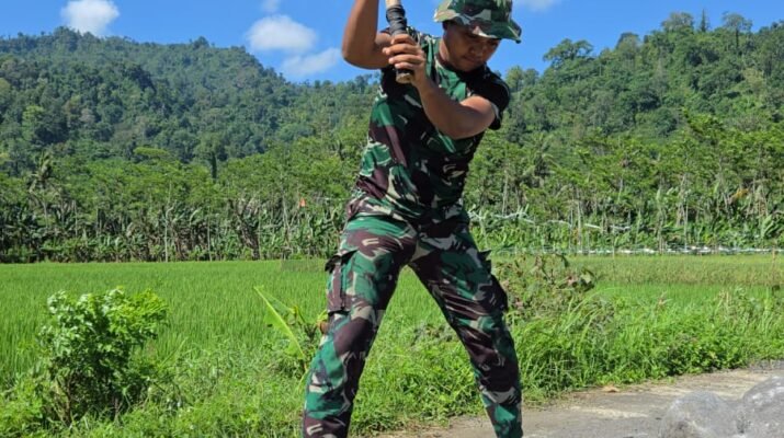 Keterbatasan Bukan Halangan: Prajurit TMMD Bangun Irigasi demi Harapan Petani Lebakharjo Malang – Dengan hanya bermodalkan alat sederhana seperti palu pecah batu, anggota Satuan