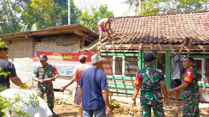 Anggota Koramil 0825-21/Kalipuro Bergotong Royong Membangun Rutilahu