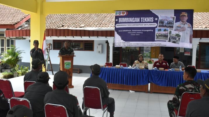 Kegiatan Bimbingan Teknis Peningkatan Kapasitas Satlinmas dalam rangka TMMD ke-126 Kodim 0818/Malang-Batu berjalan sukses dengan peran aktif Danramil 0818/17 Ampelgading Kapten Arh Zainuri bertempat di Balai Desa Lebakharjo Kecamatan Ampelgading Kabupaten Malang.