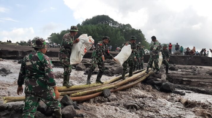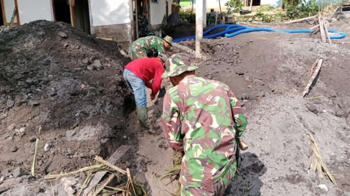 Gerak Cepat TNI, Bati Tuud Koramil Candipuro Pimpin Pembersihan Rumah Warga Terdampak Lahar Dingin LUMAJANG – Dampak aliran lahar dingin Gunung Semeru yang menerjang