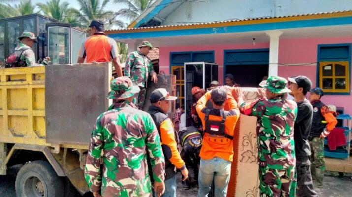 Selamatkan Harta Benda Korban, Bati Tuud Koramil Candipuro Pimpin Evakuasi Aset Warga Terdampak Lahar Dingin LUMAJANG – Pasca-terjangan banjir lahar dingin Gunung Semeru yang