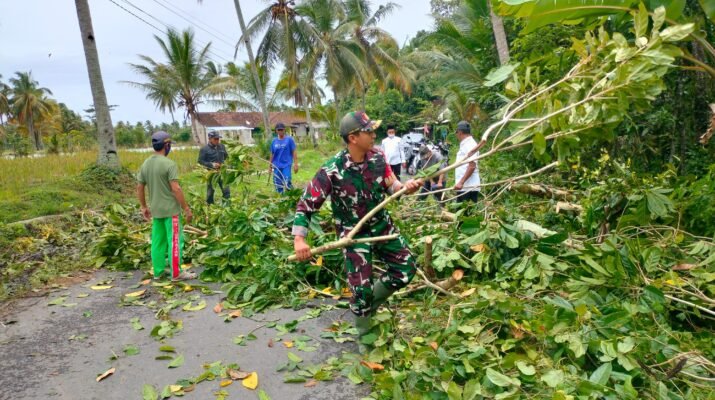 ROGOJAMPI, BANYUWANGI – Bukti nyata kemanunggalan TNI dengan rakyat ditunjukkan oleh Babinsa Desa Gitik, Sertu Arief Suherman, yang dengan sigap membantu warga menangani pohon
