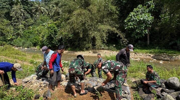 Suasana gotong royong yang sarat makna kemanusiaan tampak jelas di lokasi. Warga desa tanpa ragu ikut serta mengangkut batu dan menganyam kawat bronjong, menunjukkan semangat kemanunggalan TNI-Rakyat yang menjadi ruh utama TMMD. Bapak Toha, salah satu tokoh masyarakat setempat, menyampaikan rasa terima kasih. “Dulu kami selalu khawatir tebing ini longsor. Sekarang, dengan bantuan Bapak-bapak TNI, kami merasa jauh lebih tenang. Semangat gotong royong ini sungguh menghidupkan kembali kebersamaan di desa kami,” ungkapnya.